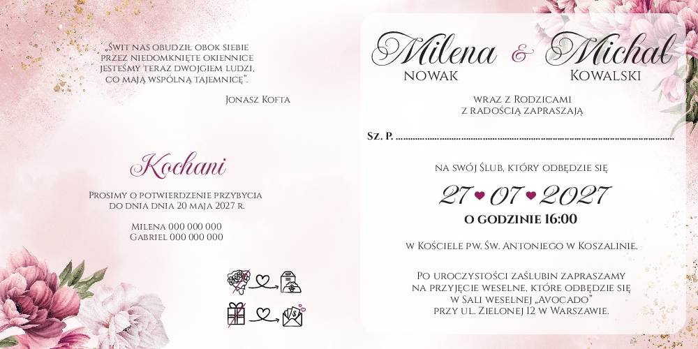 Zaproszenia Ślubne - Peonia2