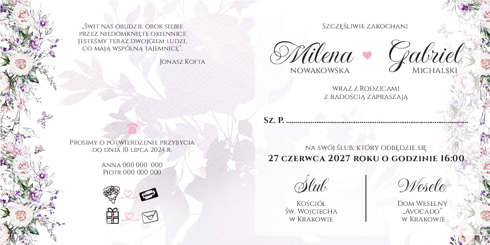 Zaproszenia Anna - wzór 5 przódZaproszenia Anna - wzór 5 wnętrzeZaproszenia Anna - wzór 5