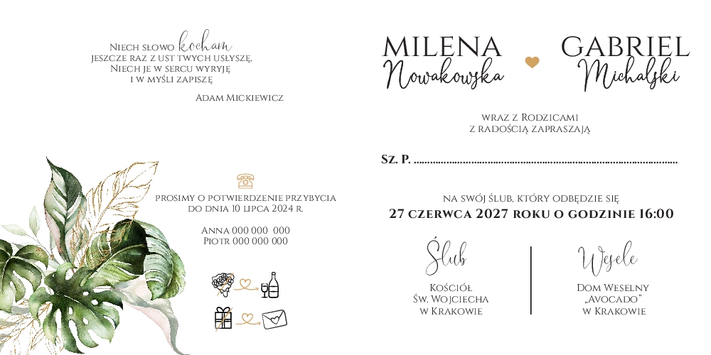 Złocone zaproszenia Ślubne ze zdjęciem - Nadia