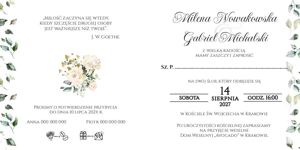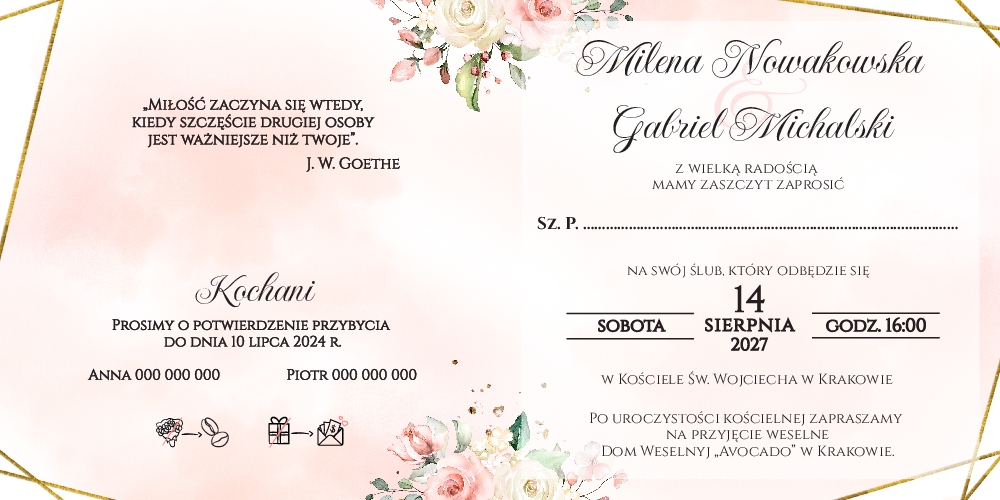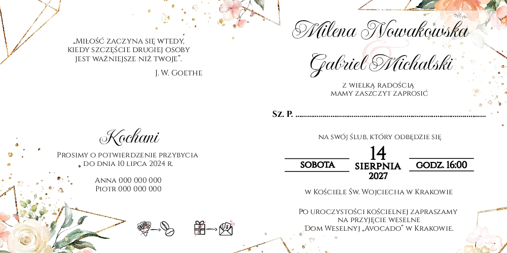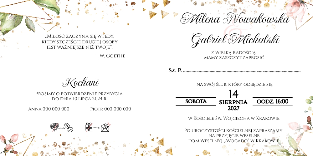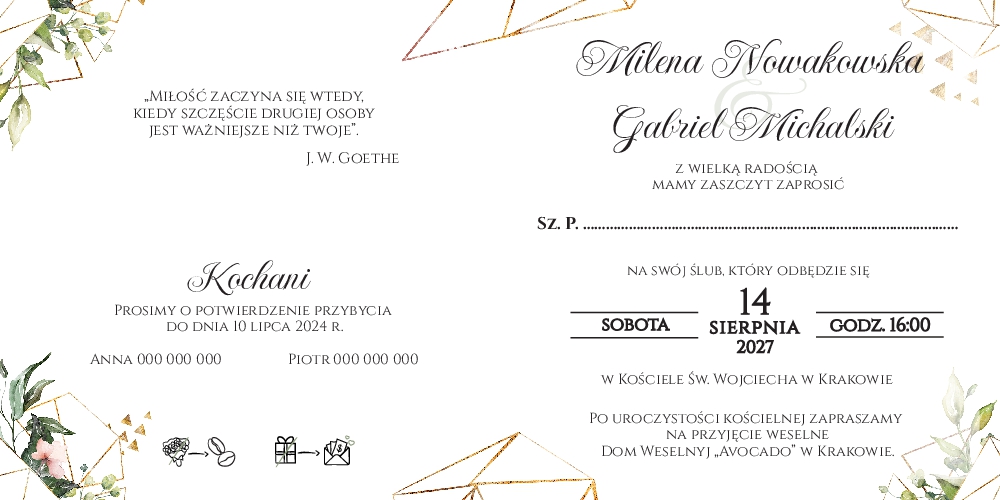Złocone zaproszenia Ślubne ze zdjęciem - Nadia
