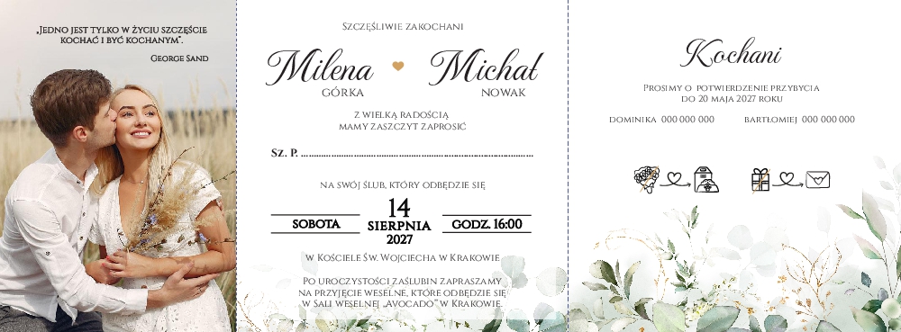 Złocone zaproszenia Ślubne ze zdjęciem - Nadia