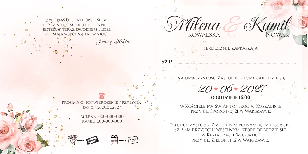 Złocone zaproszenia Ariana2 - wzór 1