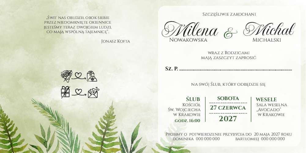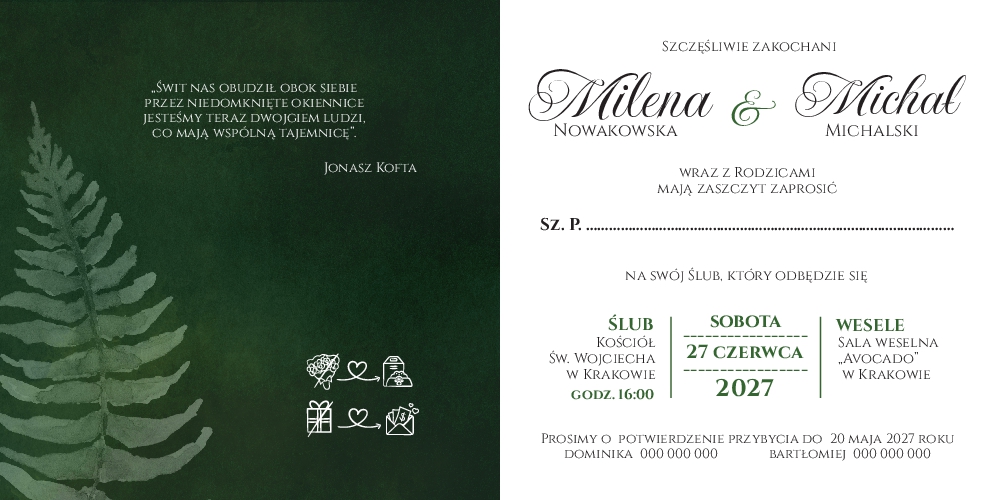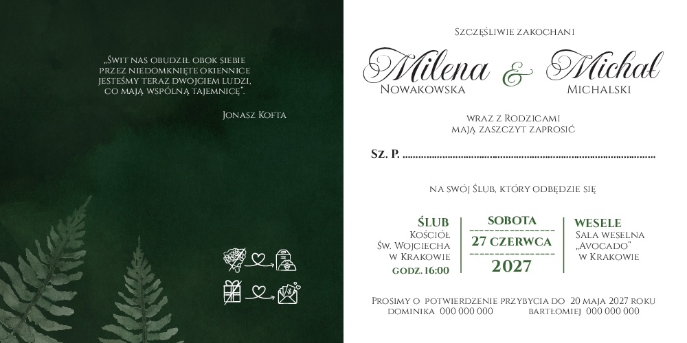 Zaproszenia Liwia - wzór 2 przódZaproszenia Liwia - wzór 2 wnętrzeZaproszenia Liwia - wzór 2
