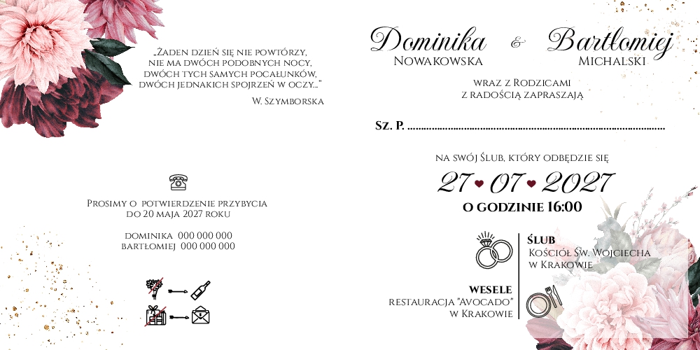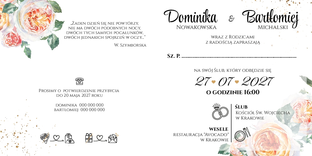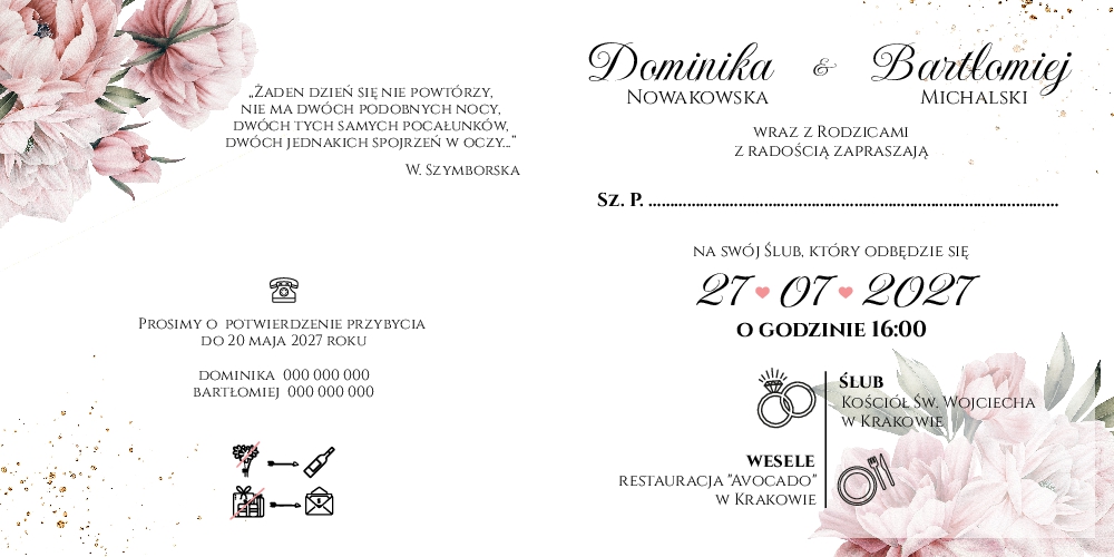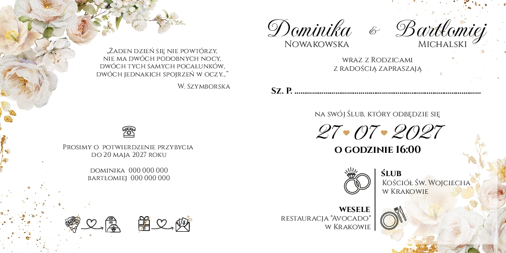 Złocone zaproszenia Ślubne ze zdjęciem - Nadia