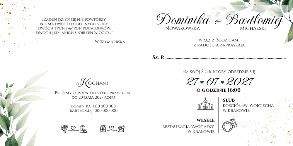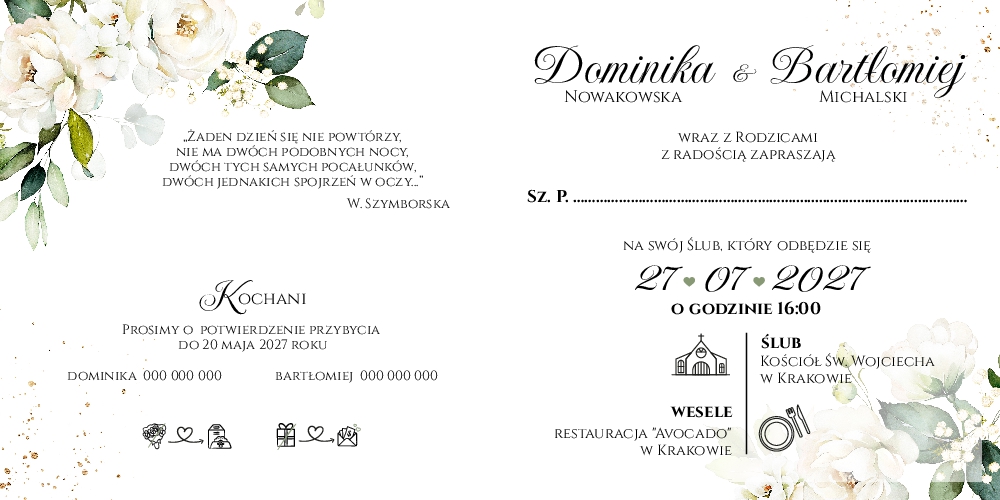 Zaproszenia Emilia2 - wzór 2 przódZaproszenia Emilia2 - wzór 2 wnętrzeZaproszenia Emilia2 - wzór 2