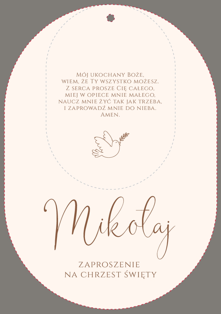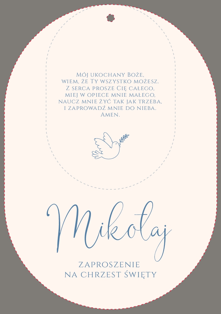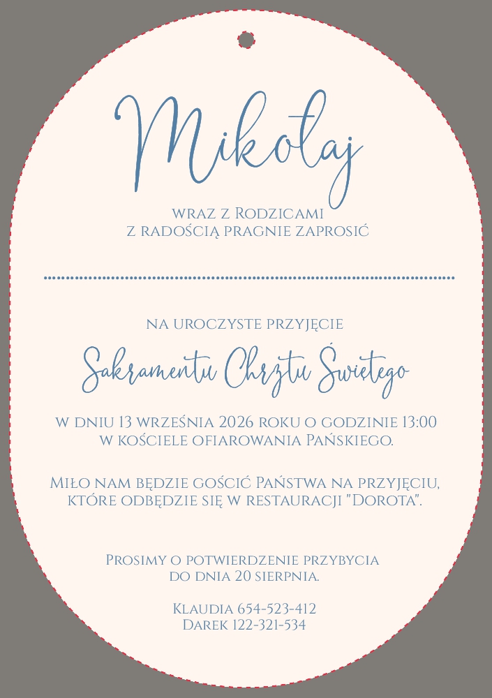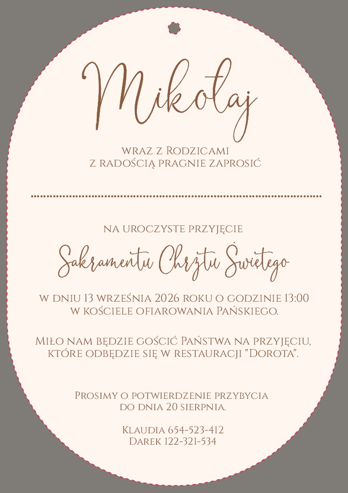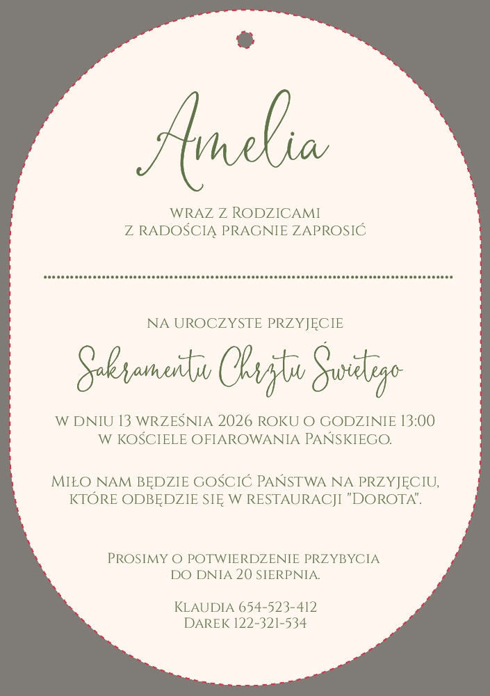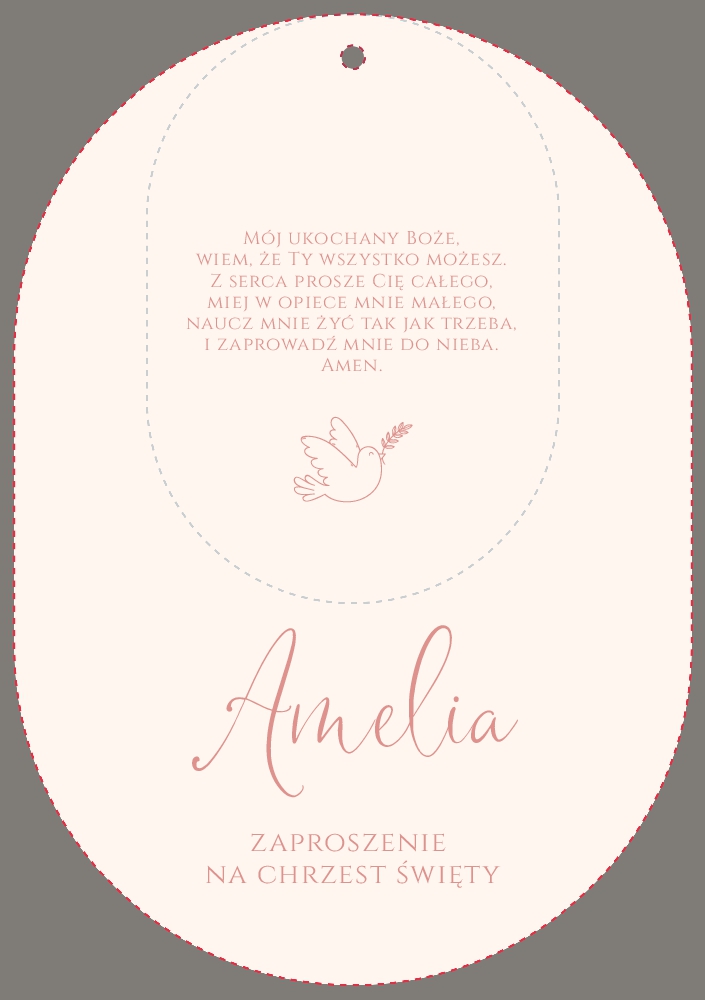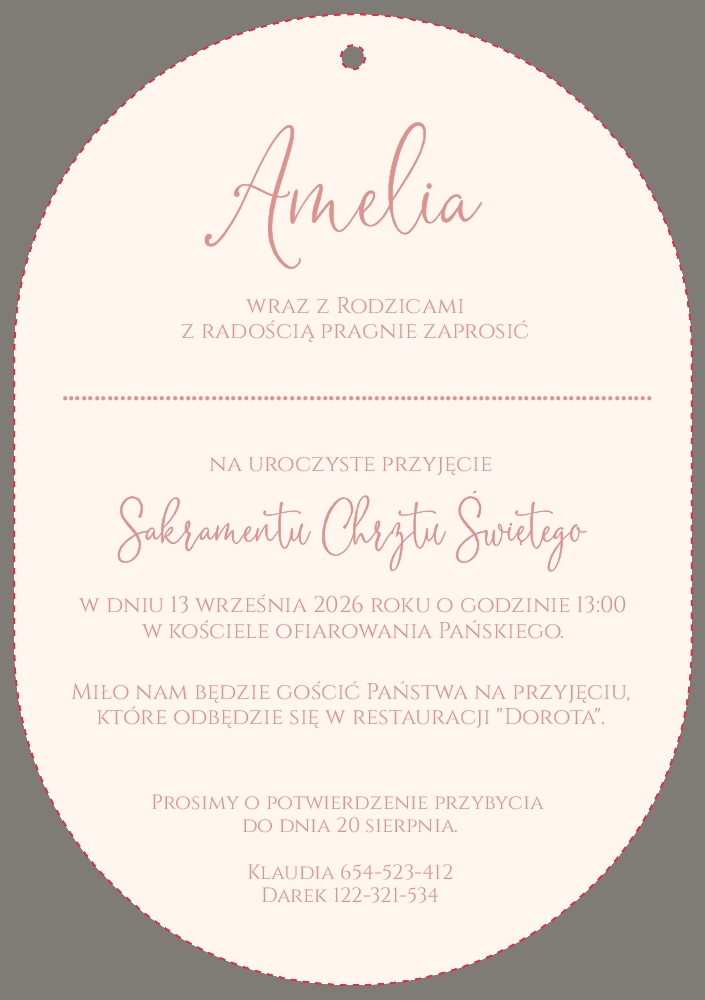 Zaproszenia na chrzest owalne ze wstążką - Agnes