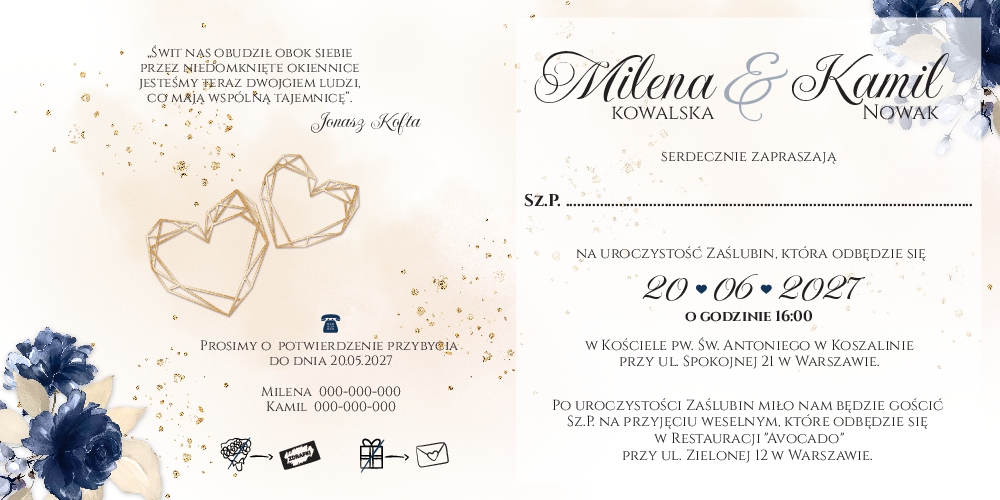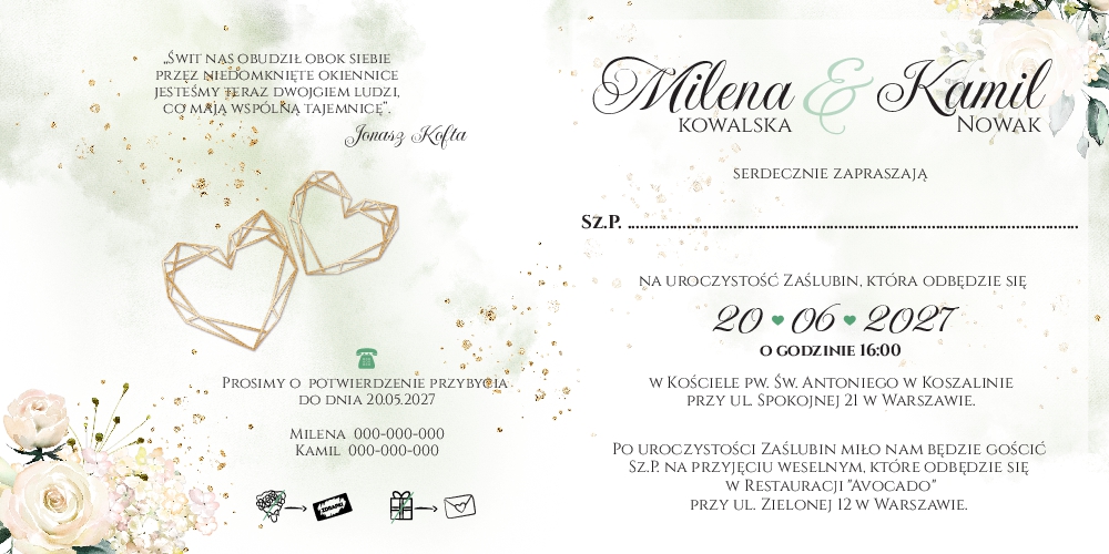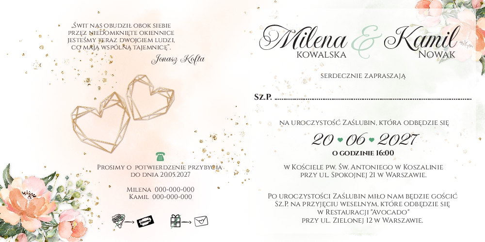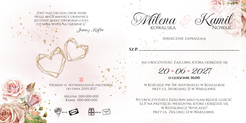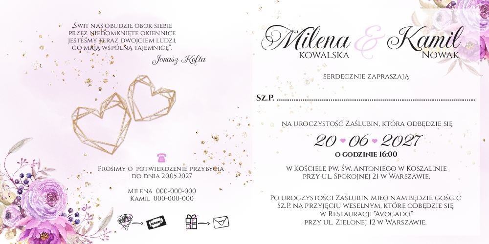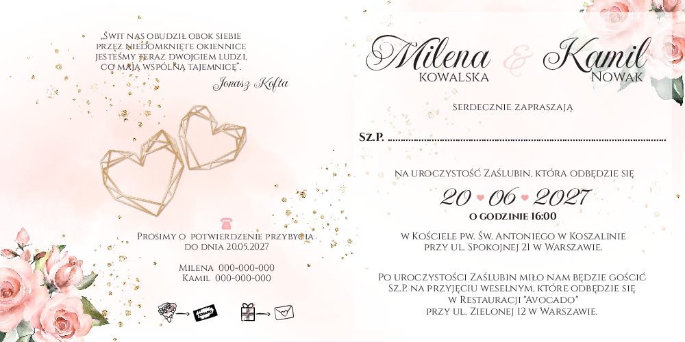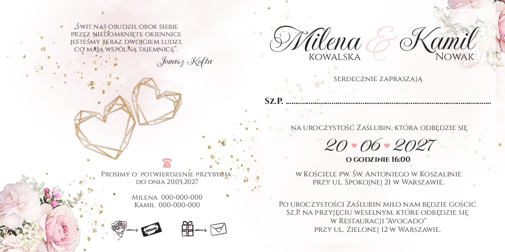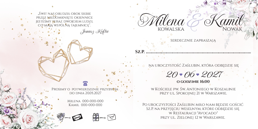 Zaproszenia Ariana2 - wzór 5 przódZaproszenia Ariana2 - wzór 5 wnętrzeZaproszenia Ariana2 - wzór 5