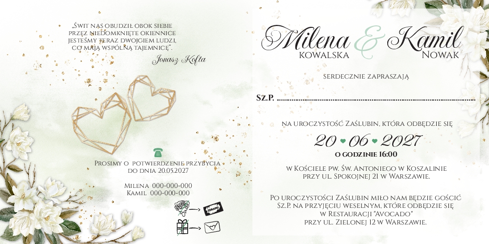 Zaproszenia Ariana2 - wzór 10 przódZaproszenia Ariana2 - wzór 10 wnętrzeZaproszenia Ariana2 - wzór 10