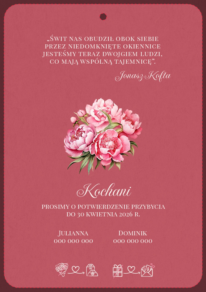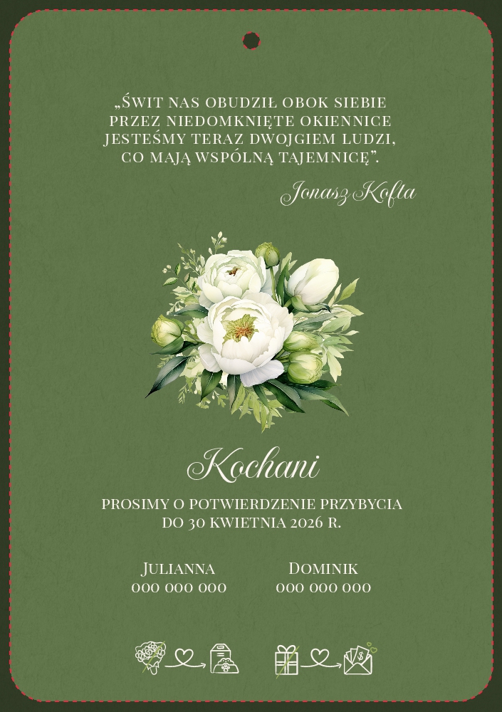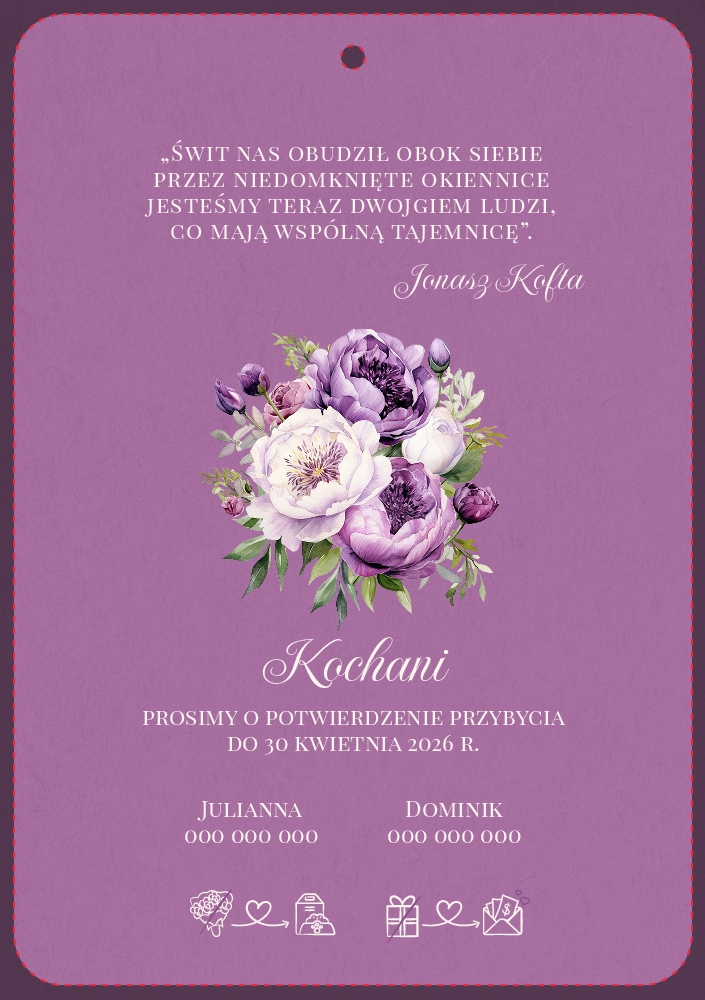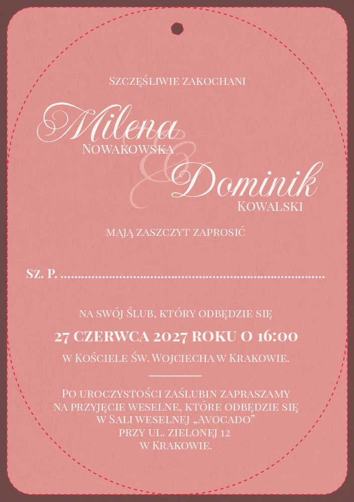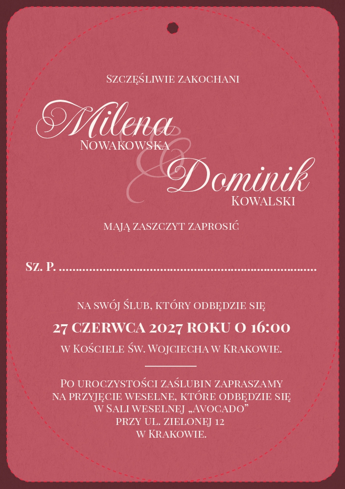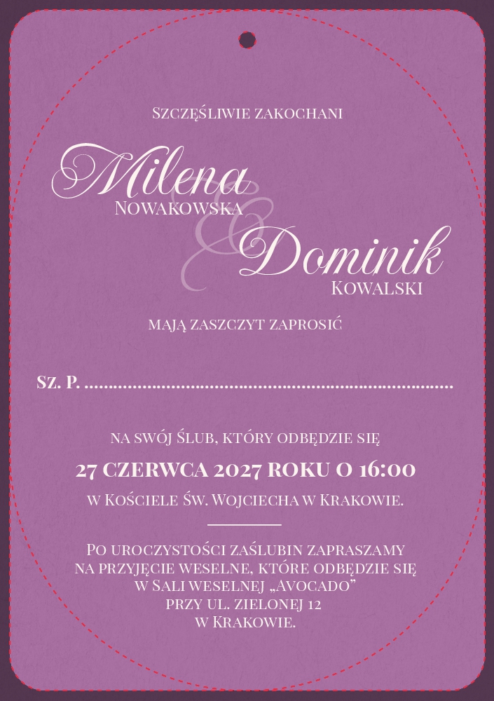Zaproszenia ślubne owalne ze wstążką - Jowita