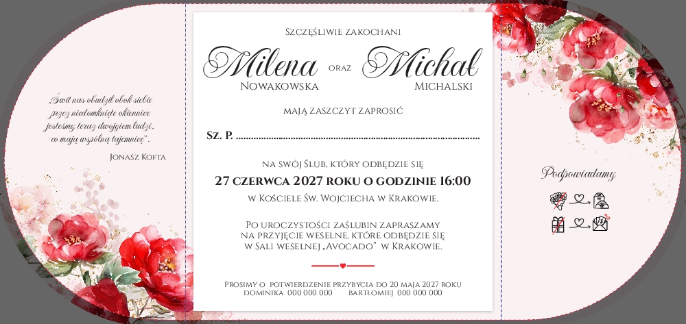 Zaproszenia ślubne kwiatowe z kalką - Paloma
