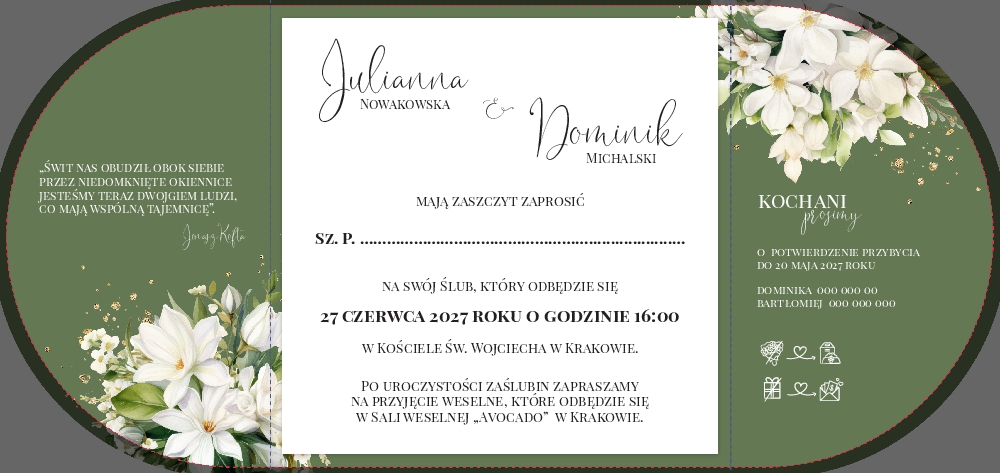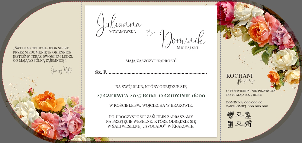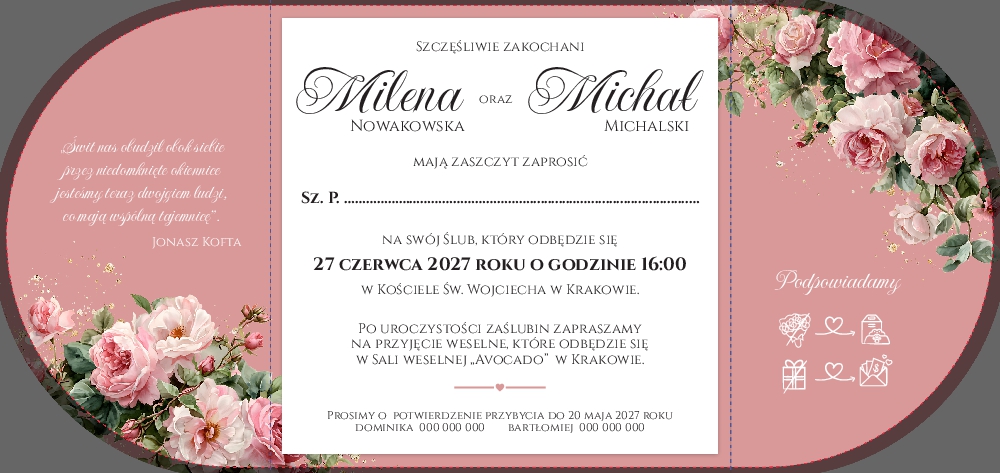 Zaproszenia ślubne owalne ze wstążką - Jowita