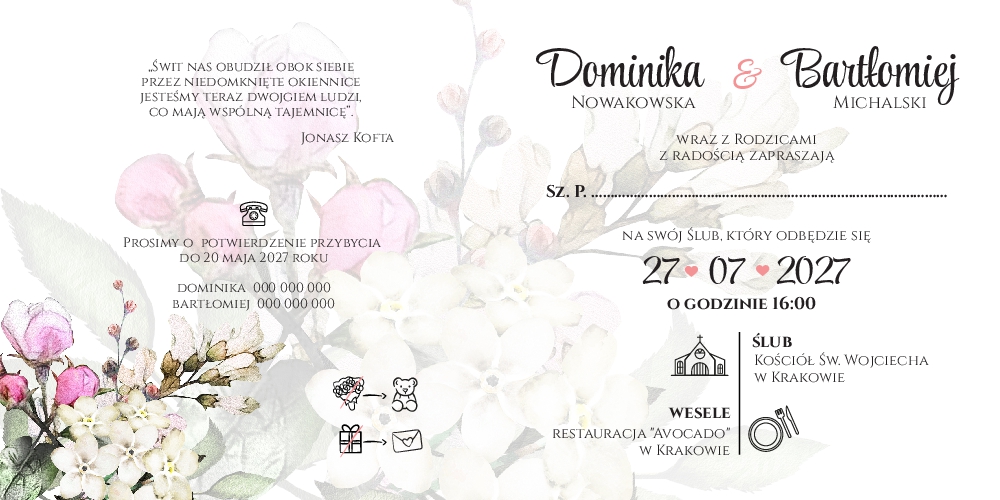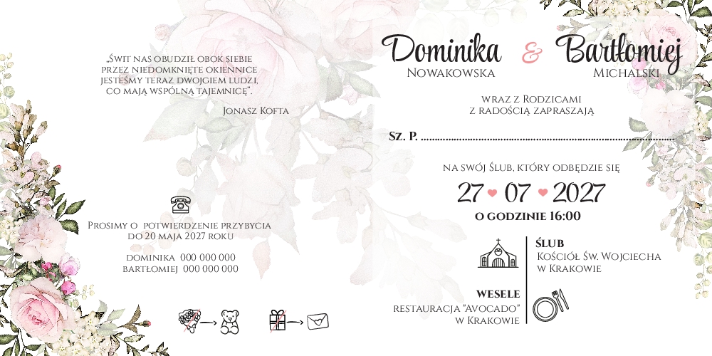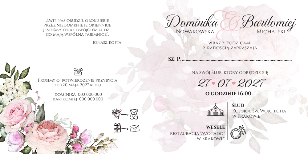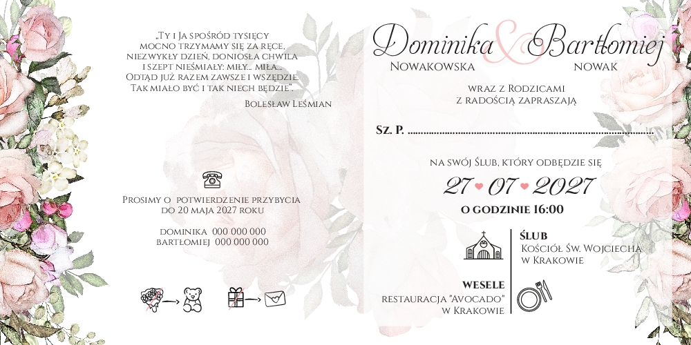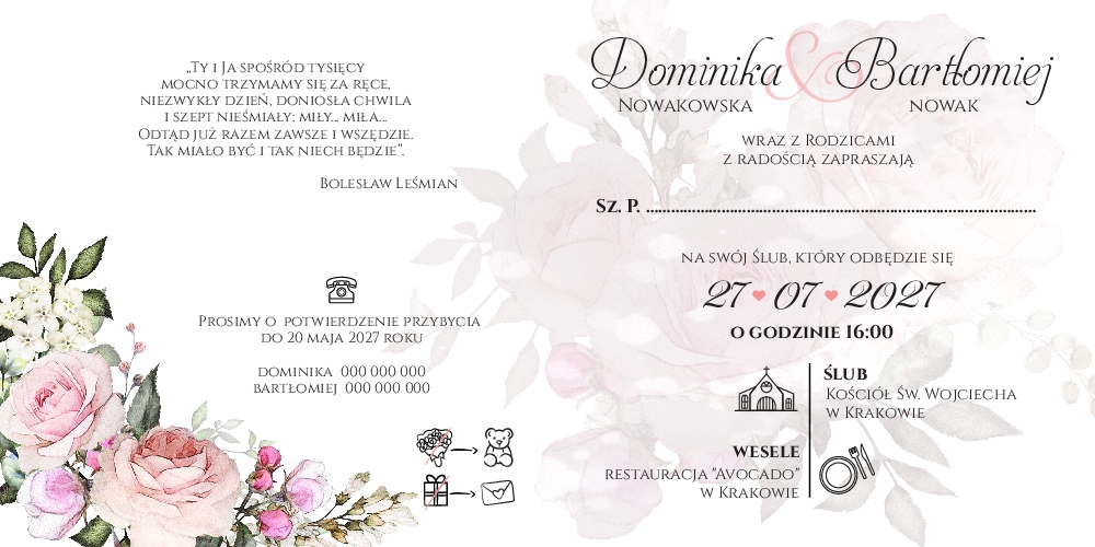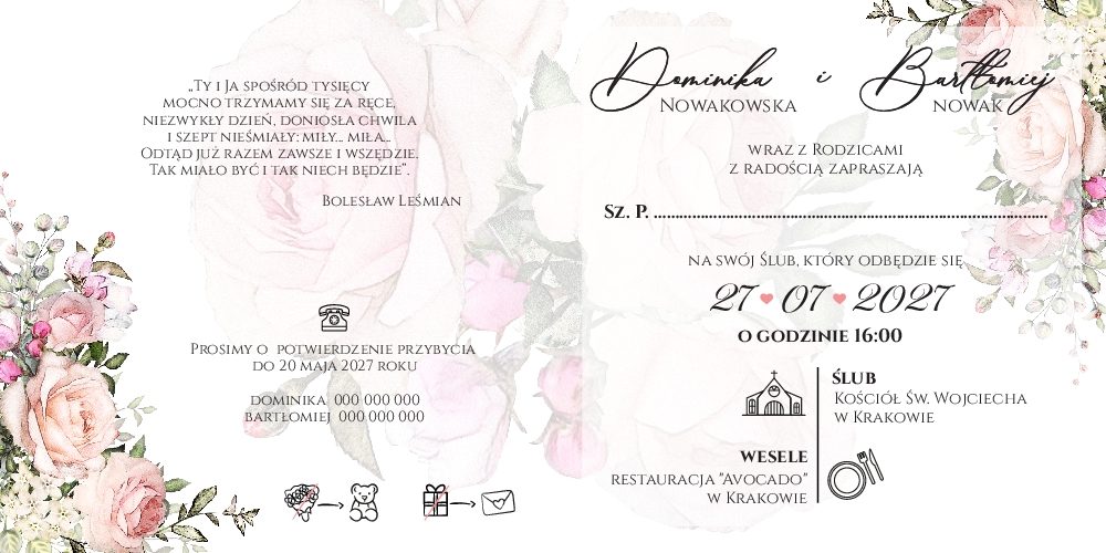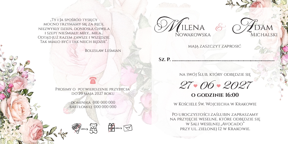 Zaproszenia Rose - wzór 15 przódZaproszenia Rose - wzór 15 wnętrzeZaproszenia Rose - wzór 15