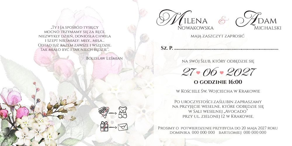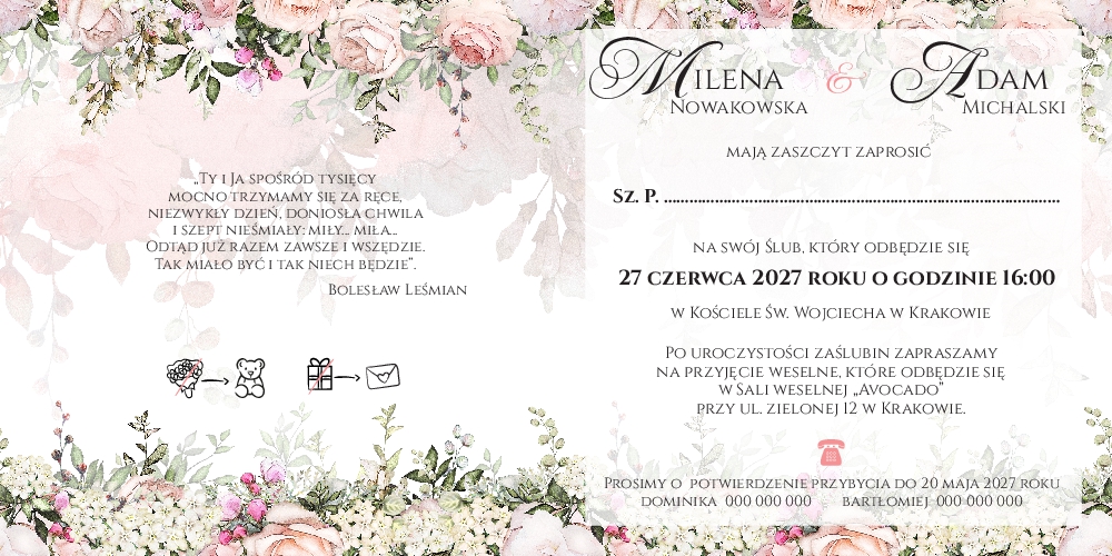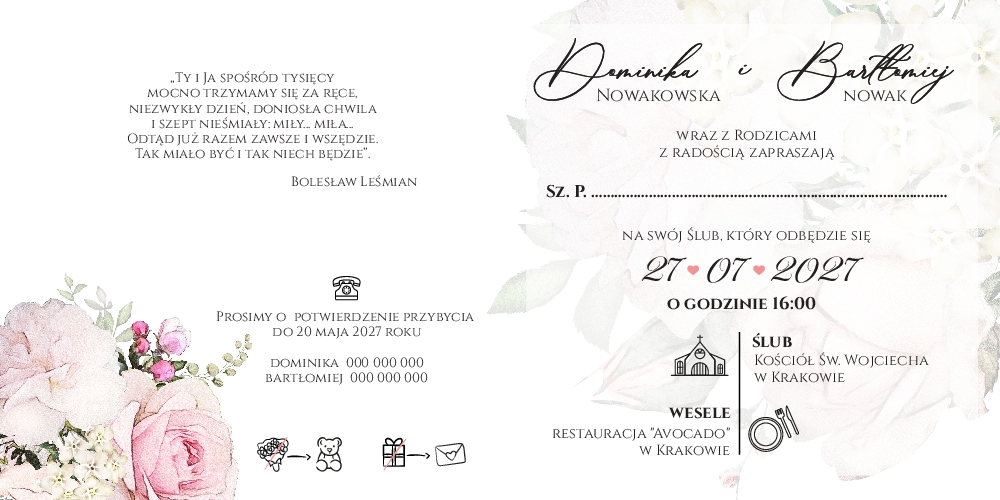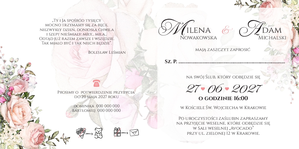 Zaproszenia Rose - wzór 14 przódZaproszenia Rose - wzór 14 wnętrzeZaproszenia Rose - wzór 14