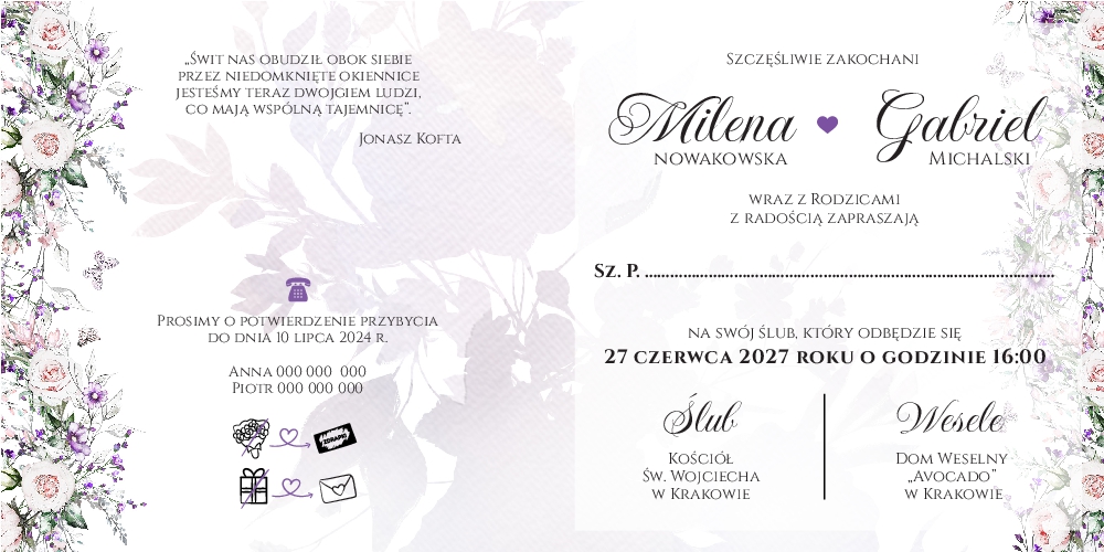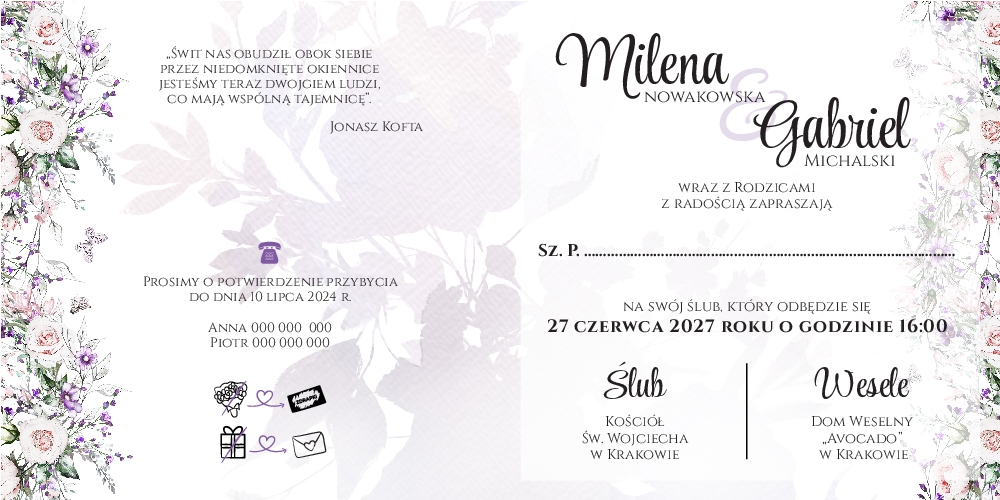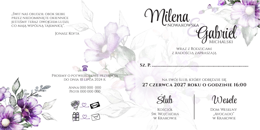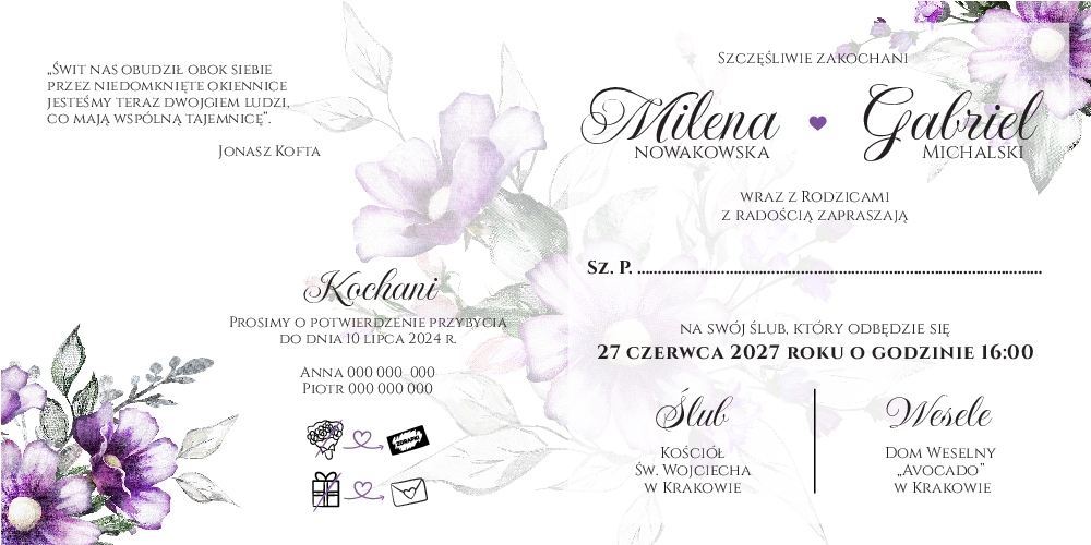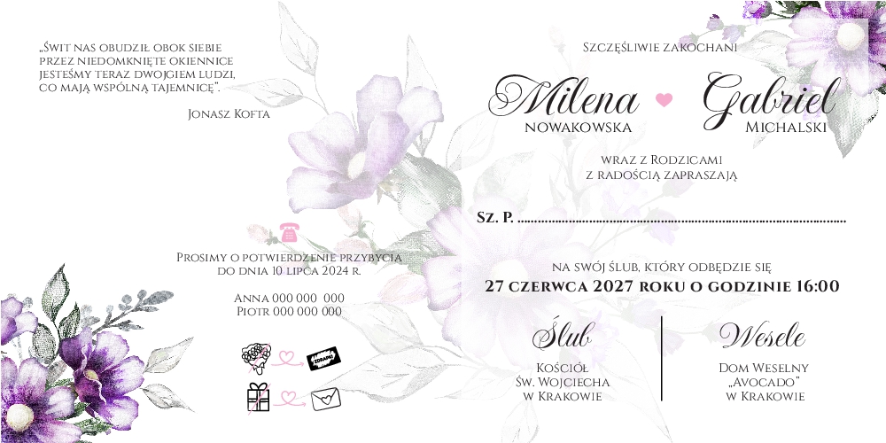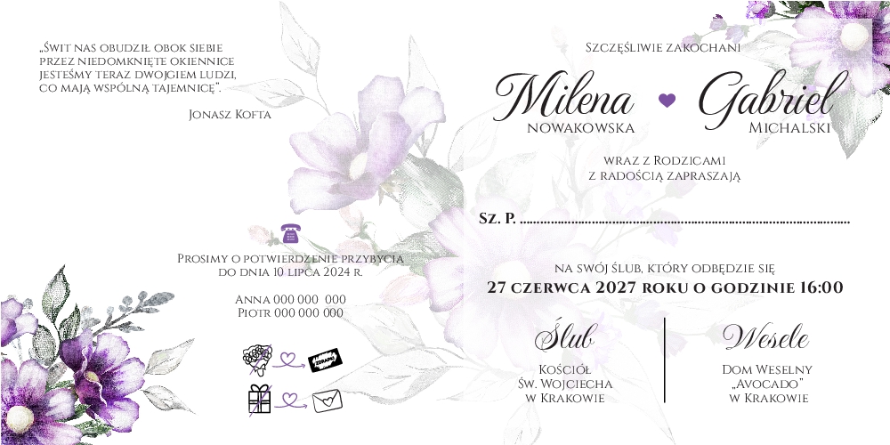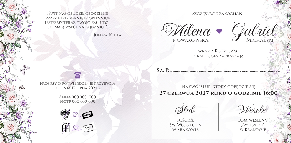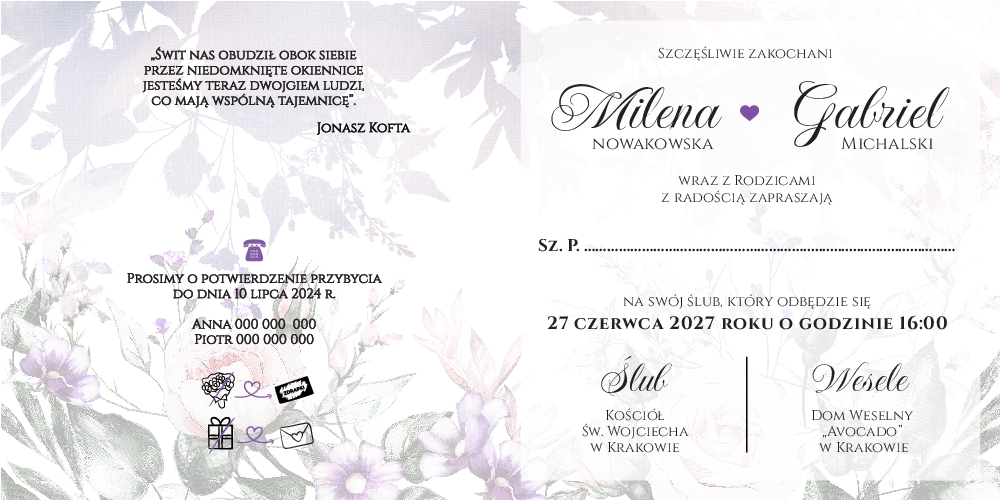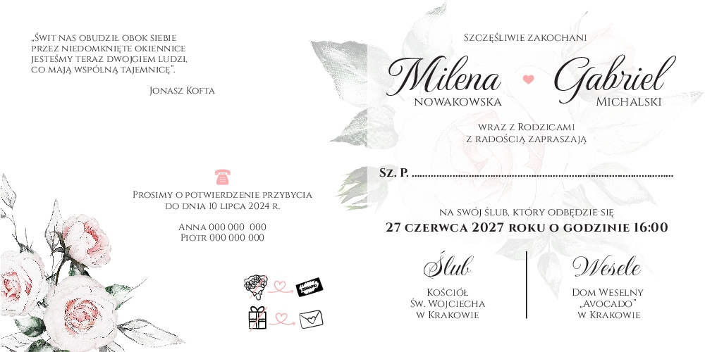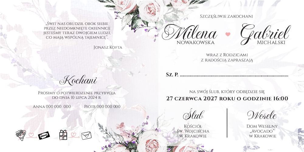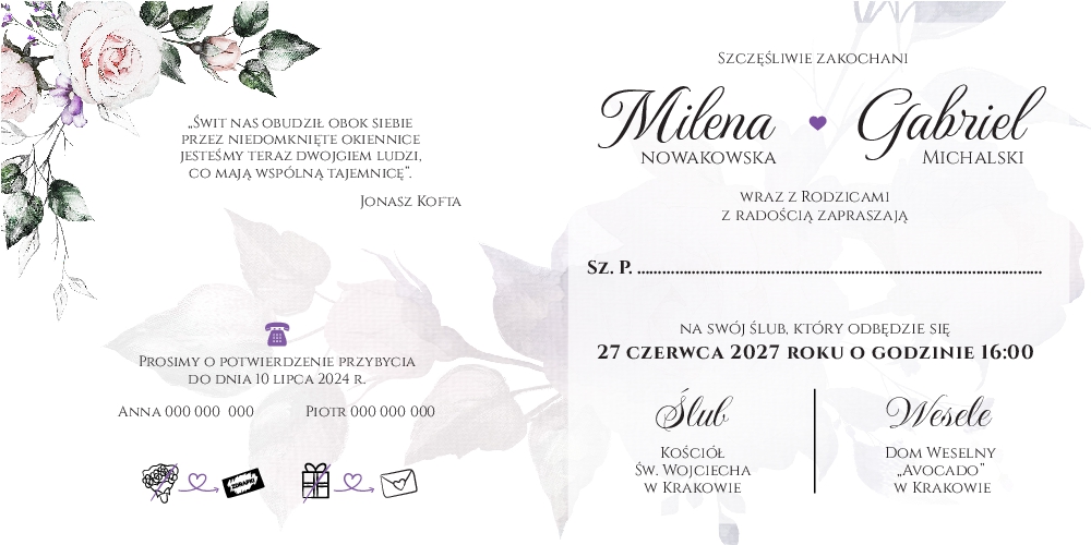 Zaproszenia Anna - wzór 13 przódZaproszenia Anna - wzór 13 wnętrzeZaproszenia Anna - wzór 13