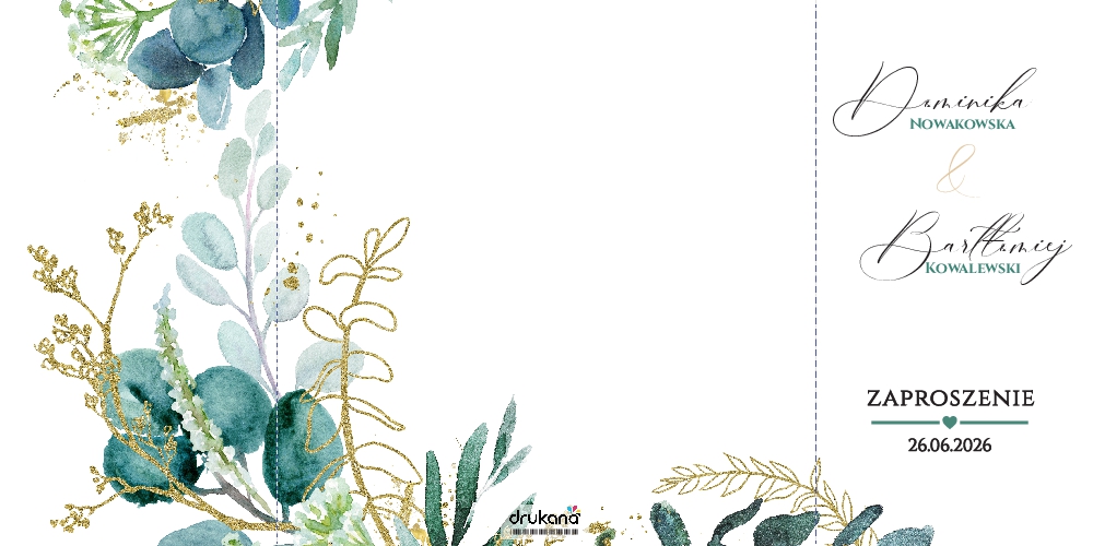 Złocone zaproszenia Ślubne ze zdjęciem - Nadia