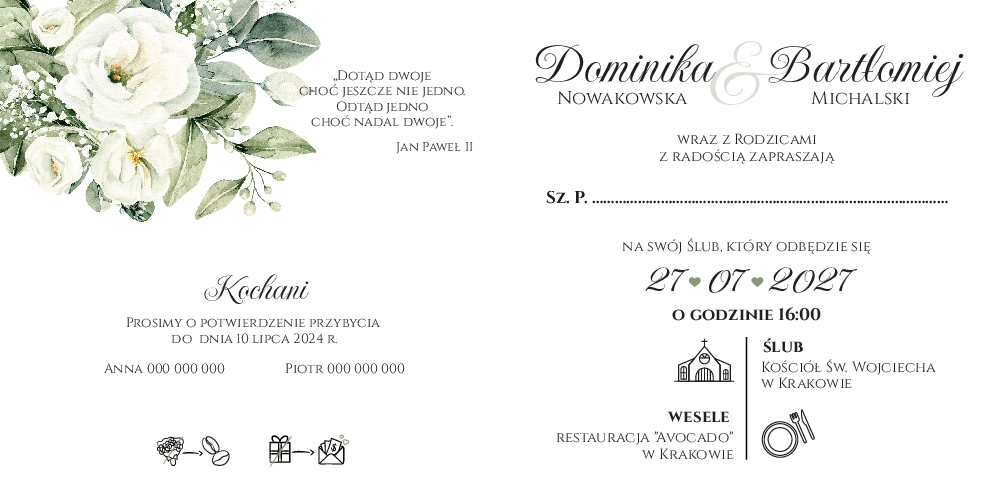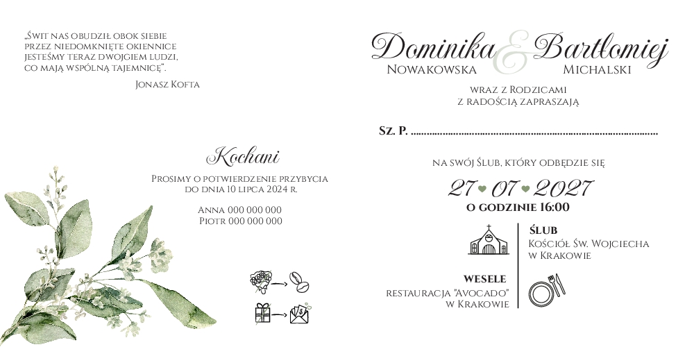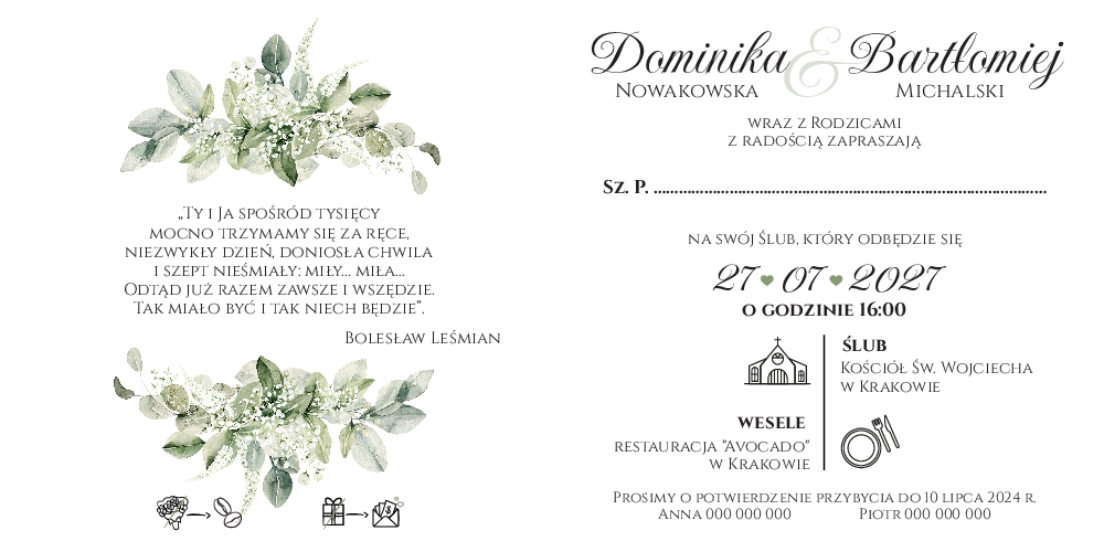 Zaproszenia Gipsówka - wzór 8 przódZaproszenia Gipsówka - wzór 8 wnętrzeZaproszenia Gipsówka - wzór 8