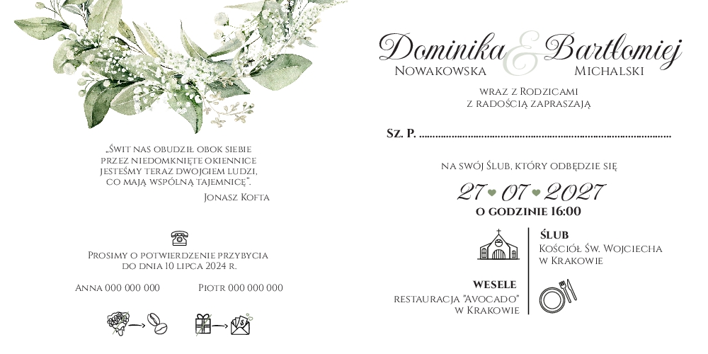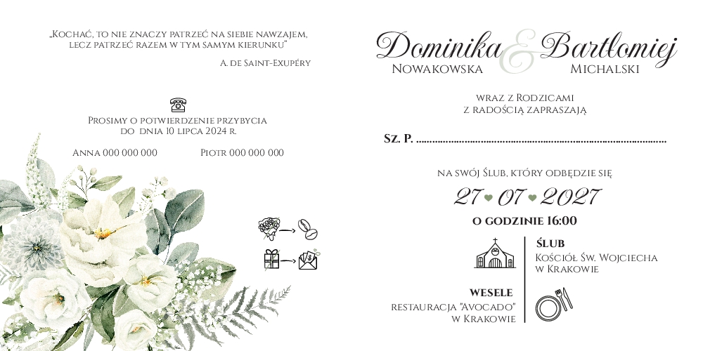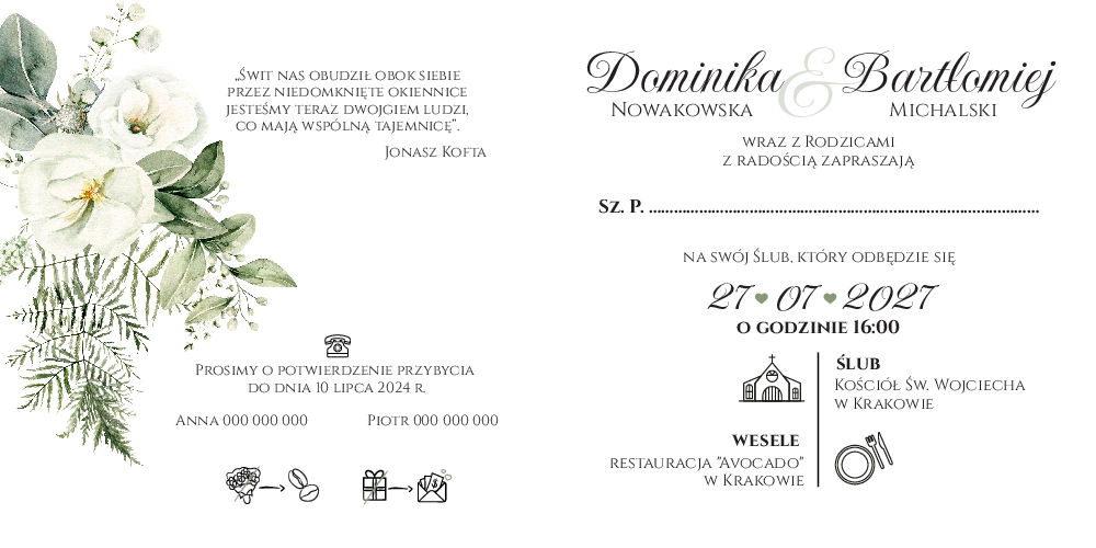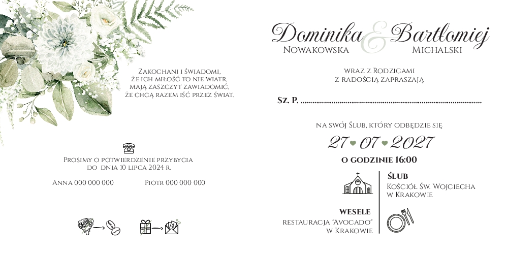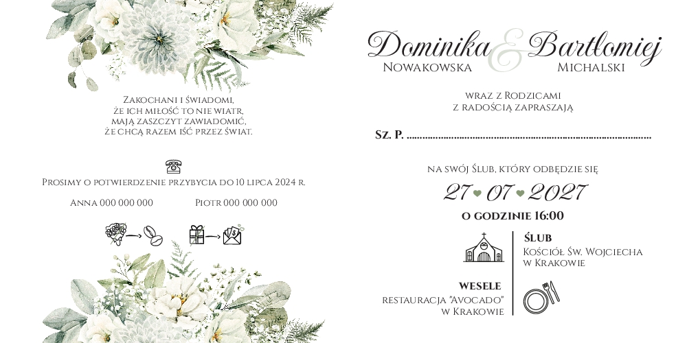 Zaproszenia Gipsówka - wzór 2 przódZaproszenia Gipsówka - wzór 2 wnętrzeZaproszenia Gipsówka - wzór 2