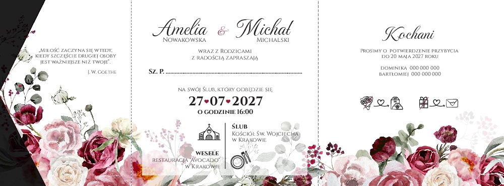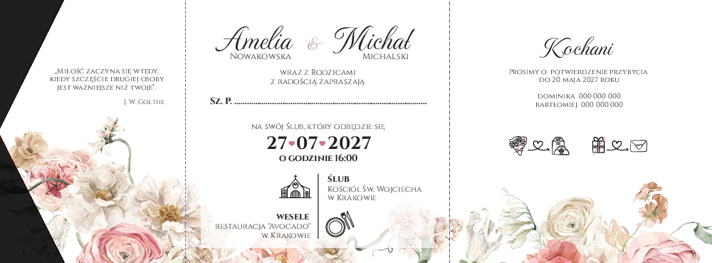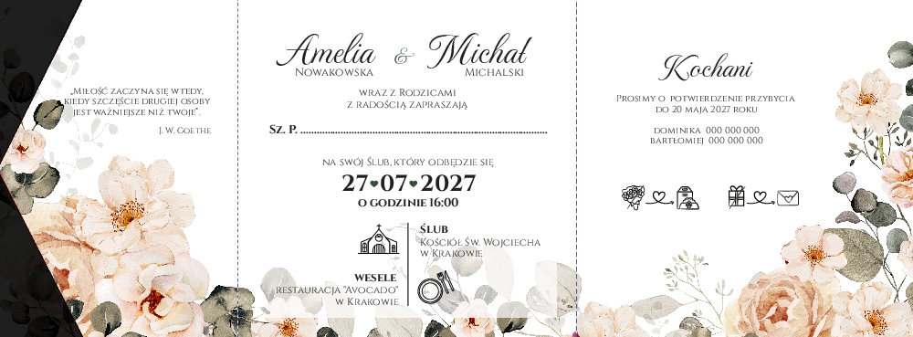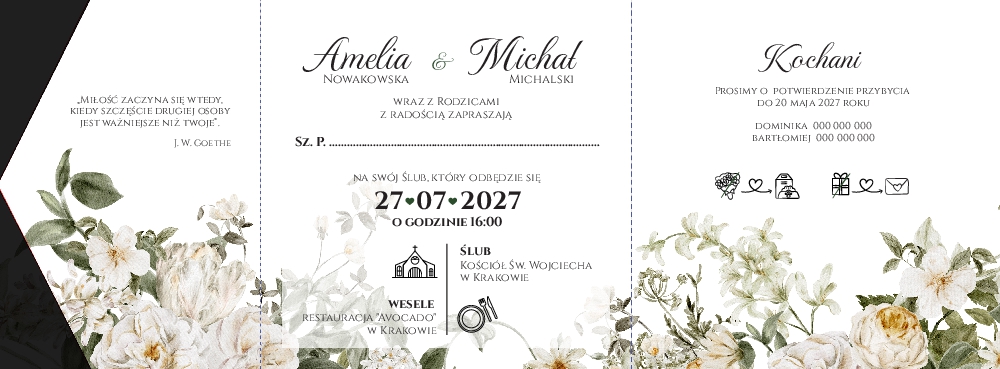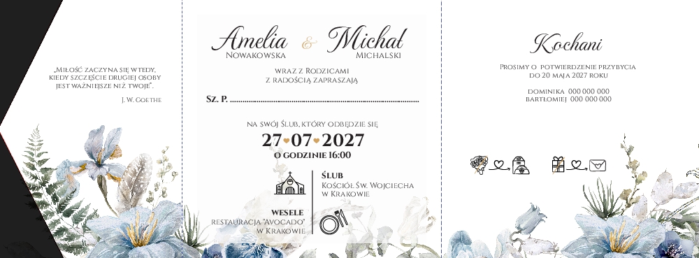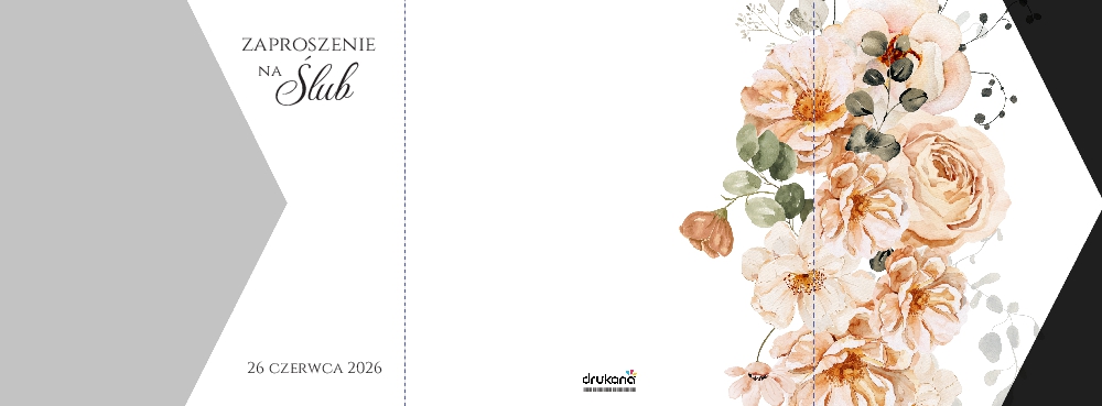 Zaproszenia ślubne składane - Milana - inicjały złote lustro