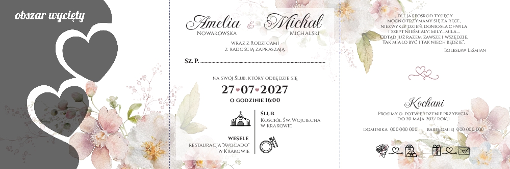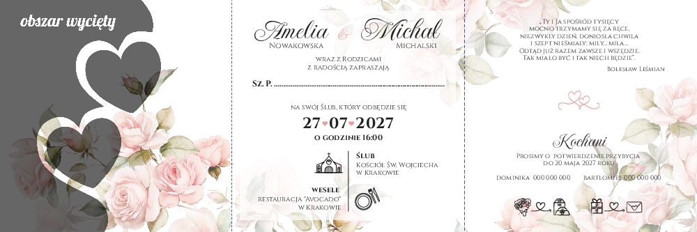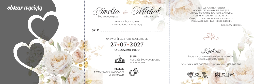 Zaproszenia ślubne wycinane serca - Diana2