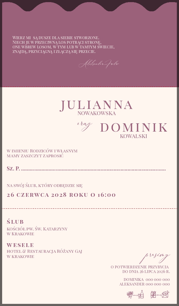 Zaproszenia ślubne falowane - Petra
