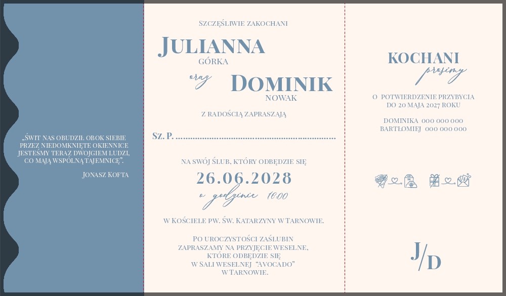 Zaproszenia ślubne falowane ze zdjęciem - Larysa2