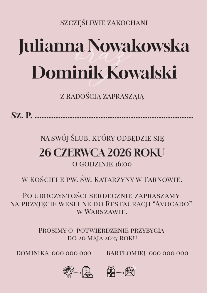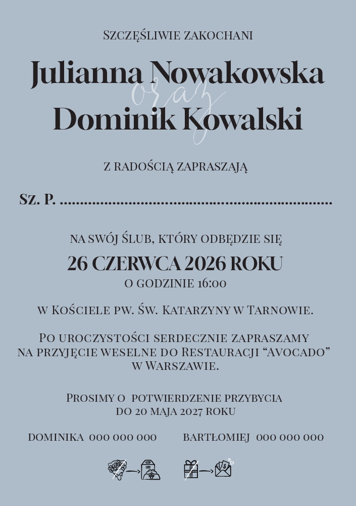 Zaproszenia ślubne owalne ze wstążką - Jowita