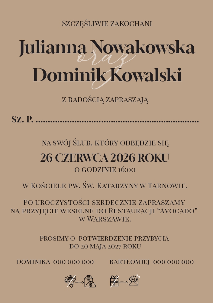 Złocone zaproszenia Ślubne ze zdjęciem - Nadia