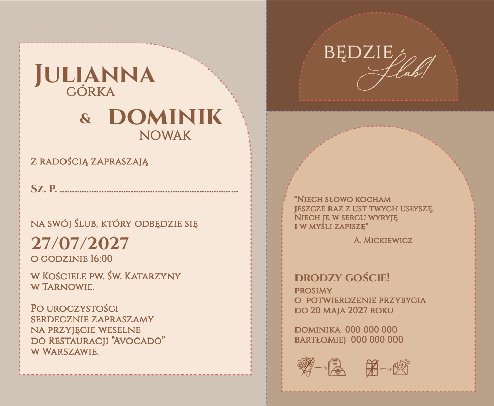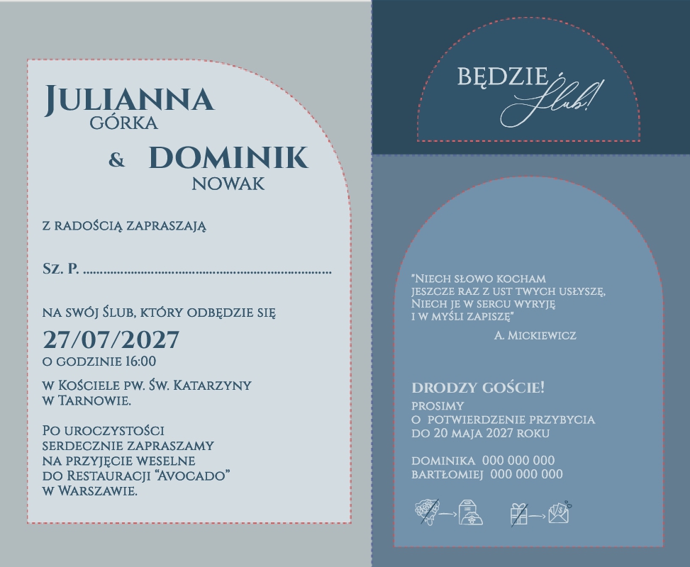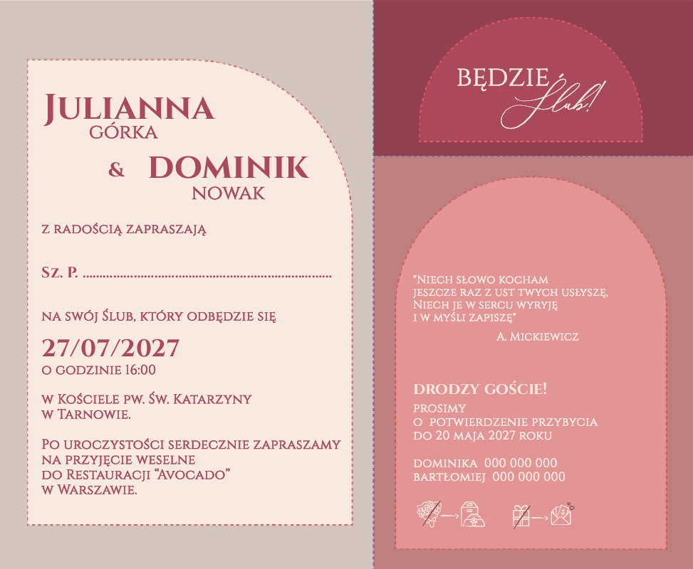 Zaproszenia ślubne z wkładką - Arkadia2