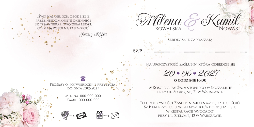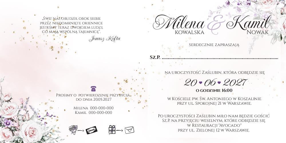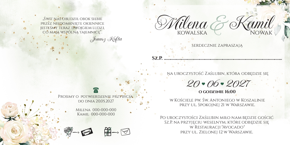 Złocone zaproszenia Ariana2 - wzór 1