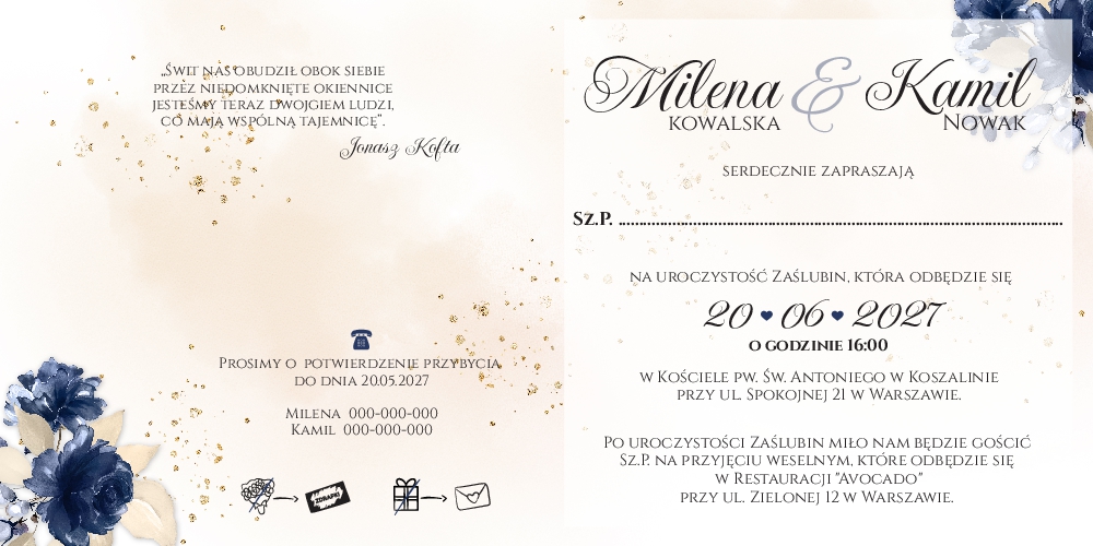 Złocone zaproszenia Ślubne - Ariana2