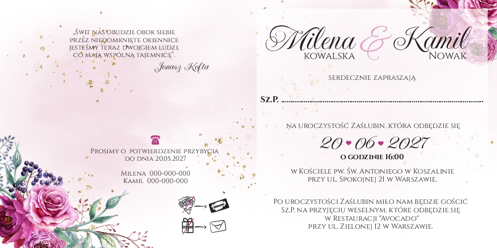 Złocone zaproszenia Ariana2 - wzór 5 przódZłocone zaproszenia Ariana2 - wzór 5 wnętrzeZłocone zaproszenia Ariana2 - wzór 5