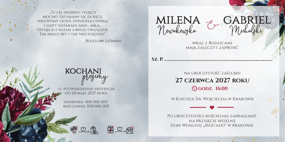 Zaproszenie ślubne z ciemnym tłem - 13 kolekcji