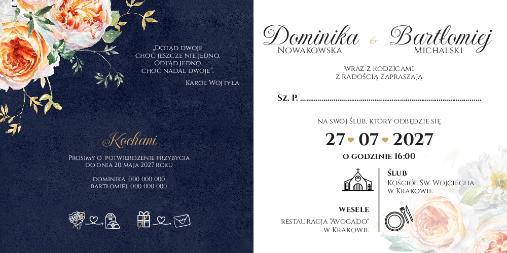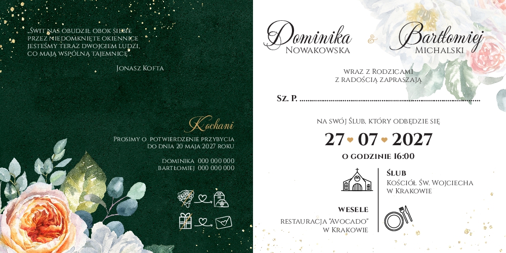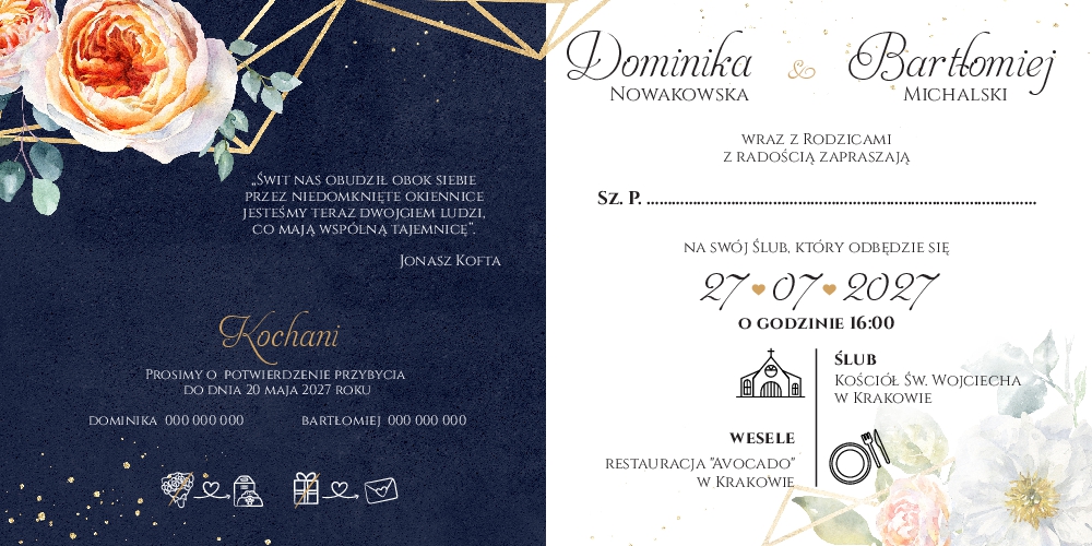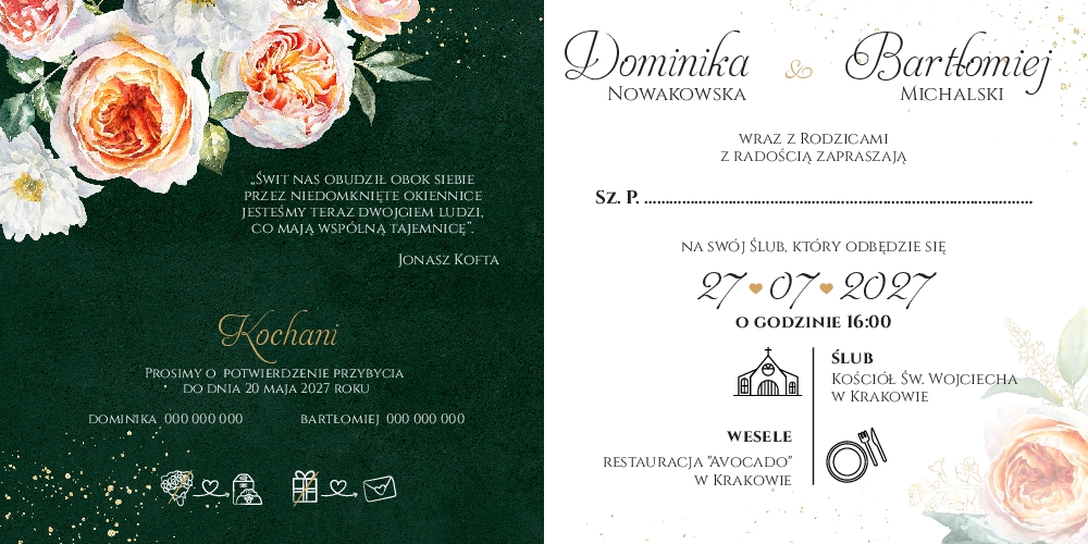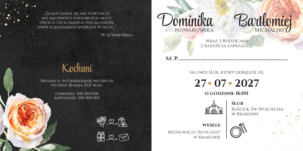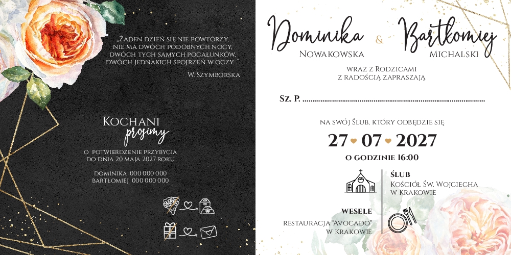 Zaproszenie ślubne z ciemnym tłem - 13 kolekcji