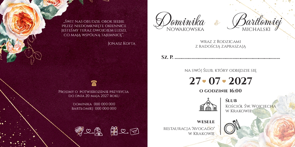 Zaproszenia Ślubne - Oliwia