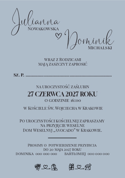 Zaproszenia ślubne owalne ze wstążką - Jowita